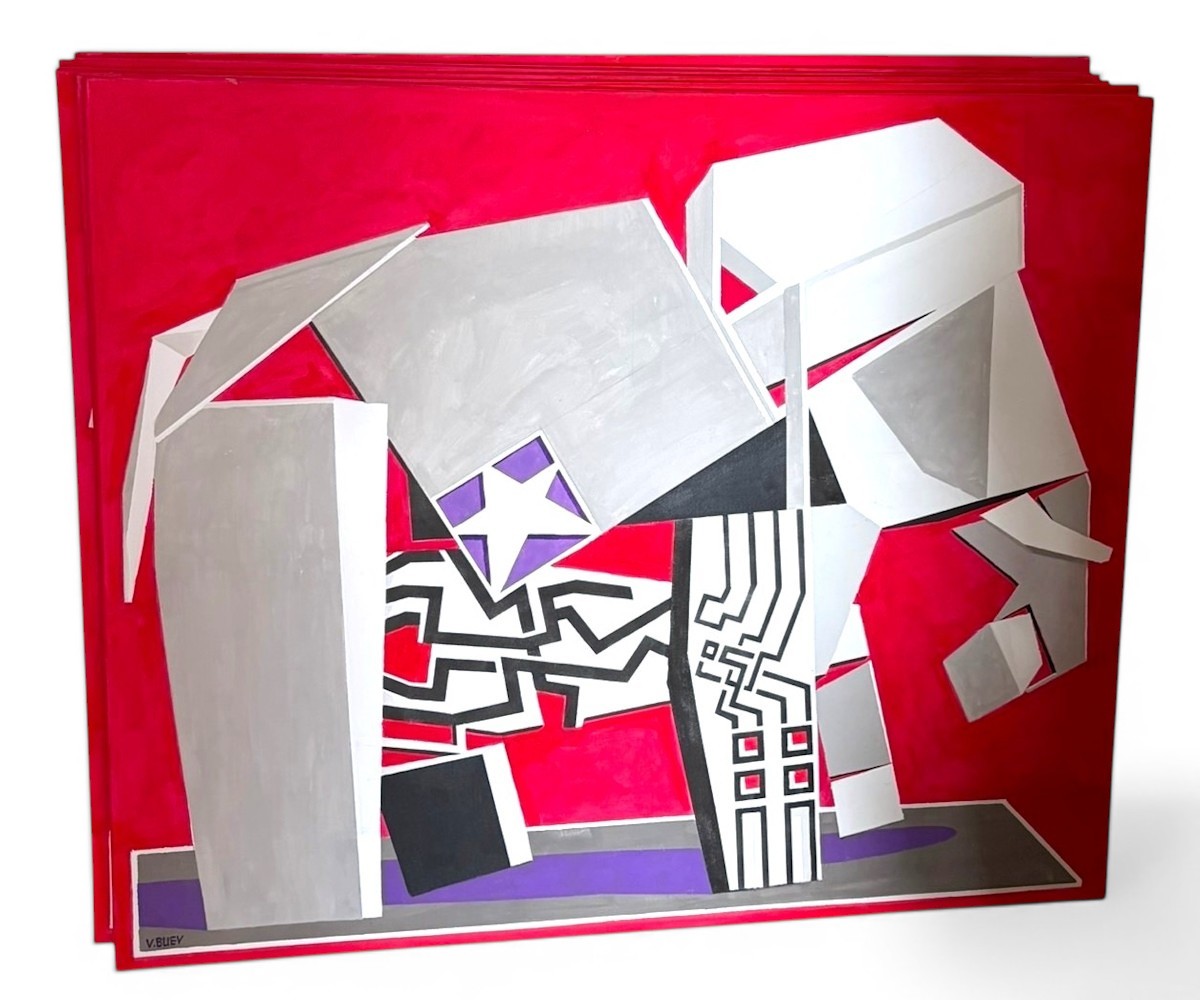 · The Red Collection is an exclusive edition of 12 works by painter Valerii Buev, each measuring 1 × 1.2 metres, featuring elephants set against bold red backgrounds. While the elephant is a recurring motif throughout Buev's broader body of work, this collection presents it in a distinctly different stylistic treatment: more focused, more deliberate, giving the series its own visual identity within the artist's oeuvre.
